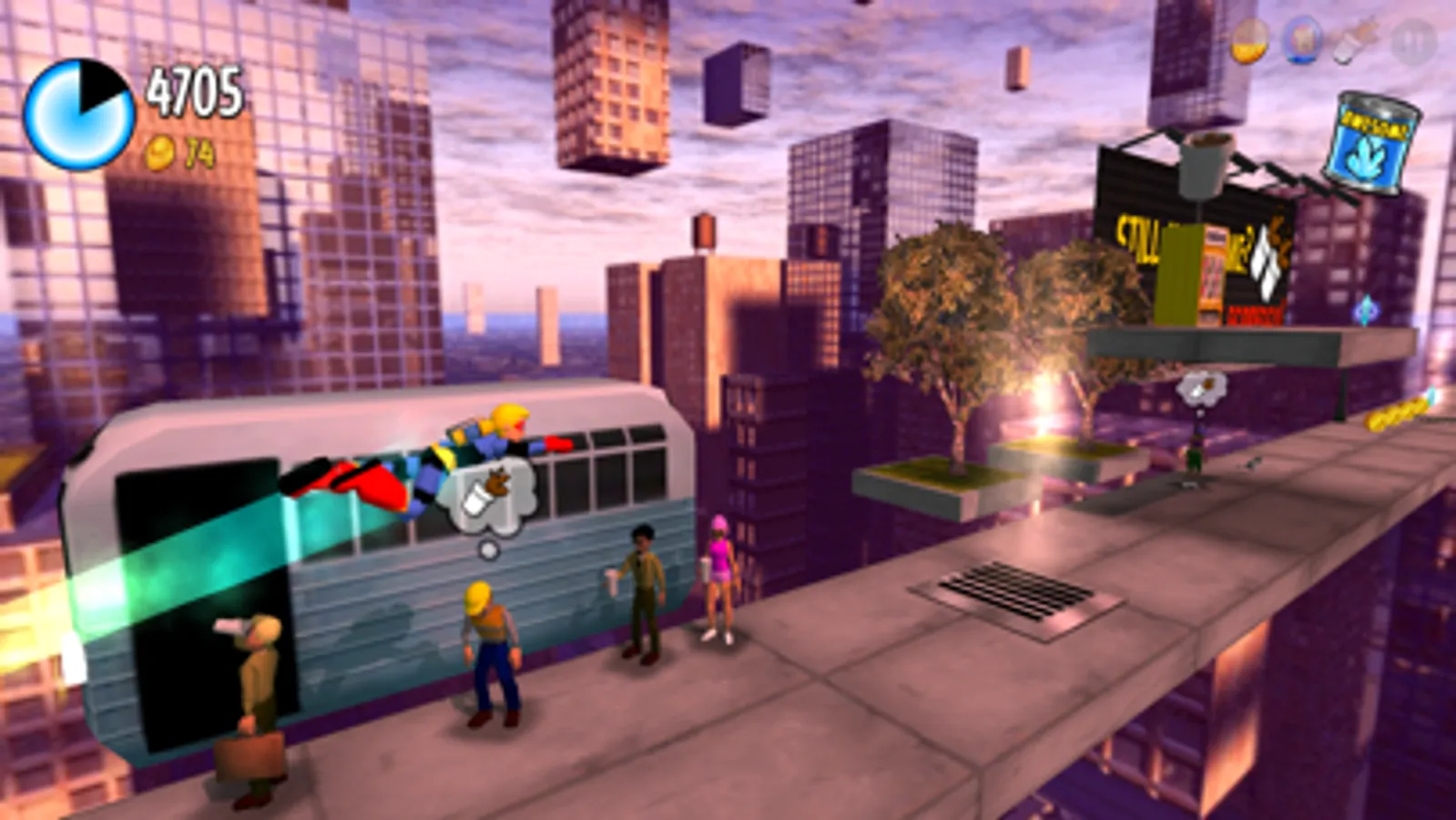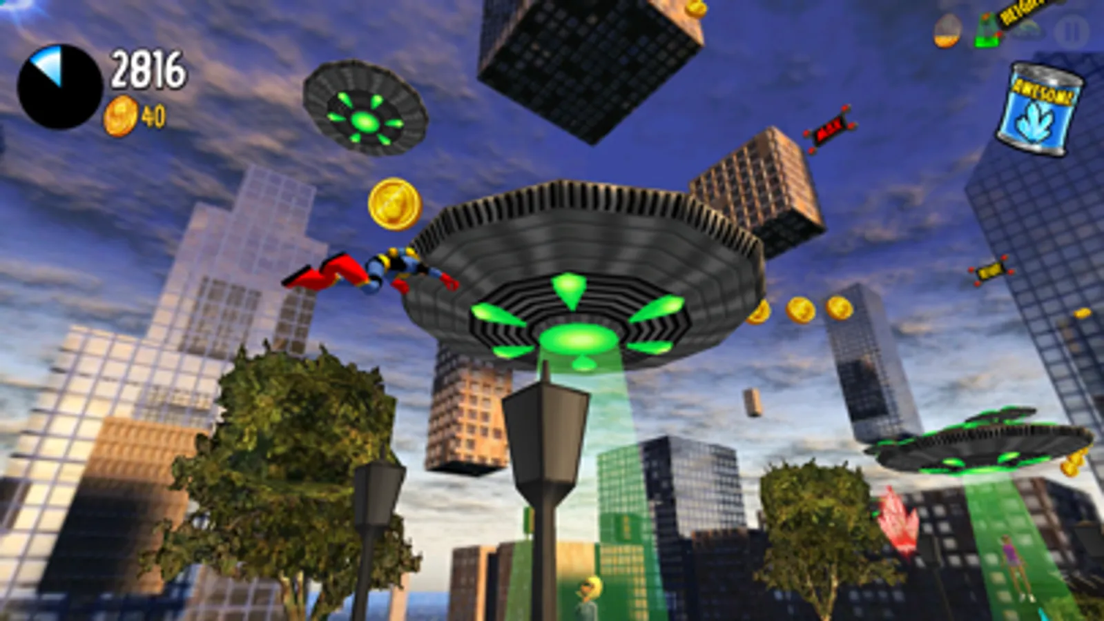 Aliens, robots, explosions, cats, trains, trucks, and shiny gold coins... lots of shiny gold coins! More cats, hover cars, hover boards, fruit bowls, brick walls, wrecking balls, a crazy dentist, soccer games and coffee? Giant toxic spiders, fires, cross dressing, break dancing, pizzas, donuts, guys in giant toilets, pool toys, ufos, and even more cats!