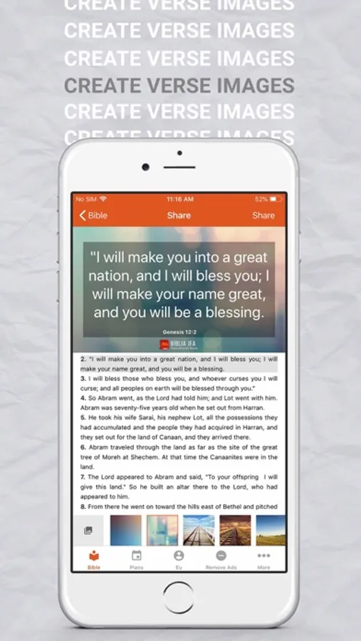 o Versicles: resources to highlight, mark with colours, bookmarks, copy, add personal notes. Share verses on Whatsapp, Facebook, Instagram and others, Use the Verse of the Day Widget and create verses images.