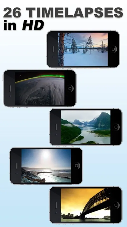 - 8 categories available (Relax, Meditation, World, Space, Aquarium, Time Lapse, Fireplace and Nature)