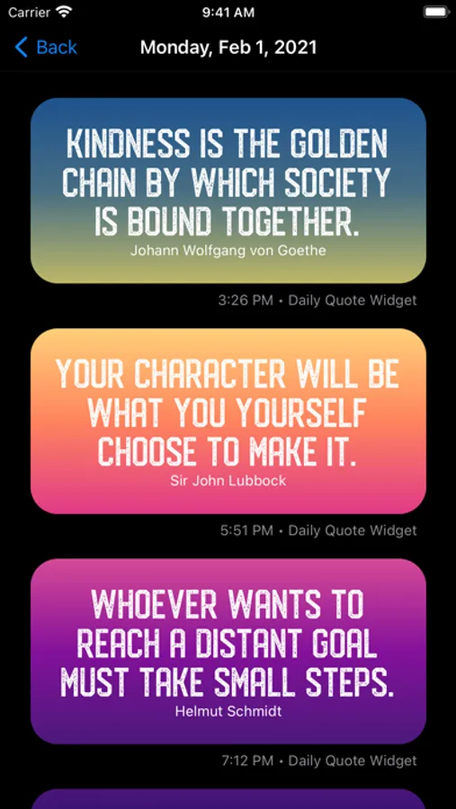 I've had this app for over a year now and it's been great. No kinks or anything just a simple quote every morning to remind me of important ways to be that help me throughout the day. I love it!