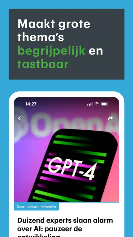 - Makkelijk swipen door de secties en van artikel naar artikel