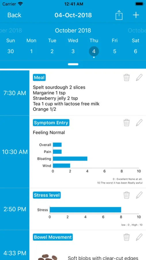 - A Diary that enables you to record food eaten, IBS symptoms, bowel habits and stress levels. The Diary will also guide you through step 2 of the diet - FODMAP reintroduction.