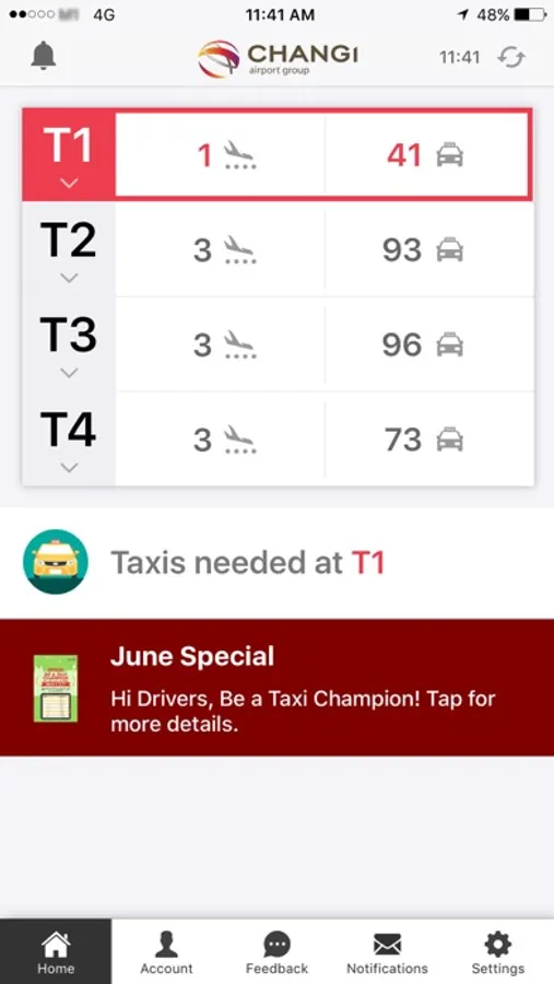 The Cabs@Changi app provides real time flight arrival and taxi queue information at Changi Airport to cabbies. Push and audio notifications are sent out when there is an urgent need for taxis.
