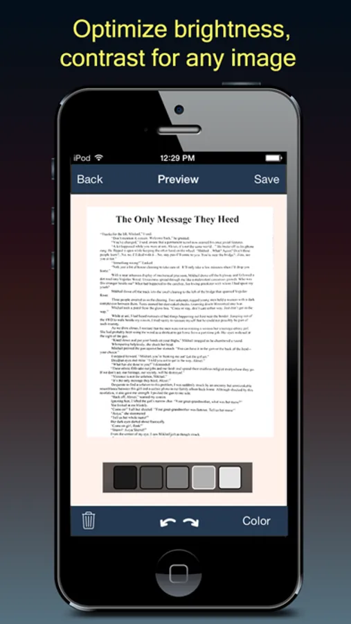 Fast Scanner support a lot of image editing options so you can make the scanned images as easy to read as possible.