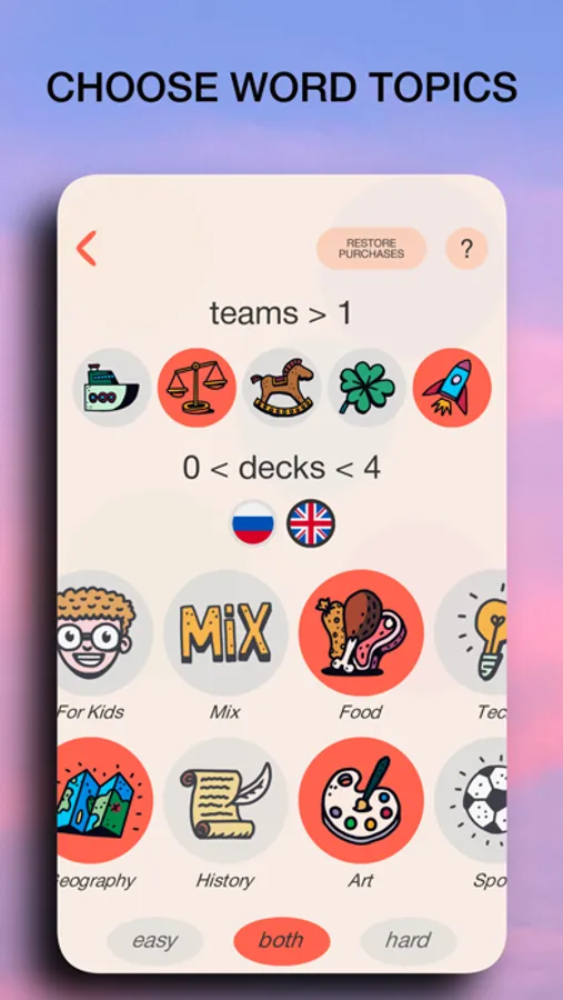 You have over 15 thousands words at your fingertips, separated into word packs by topics. Words packs are constantly being updated and expanded.