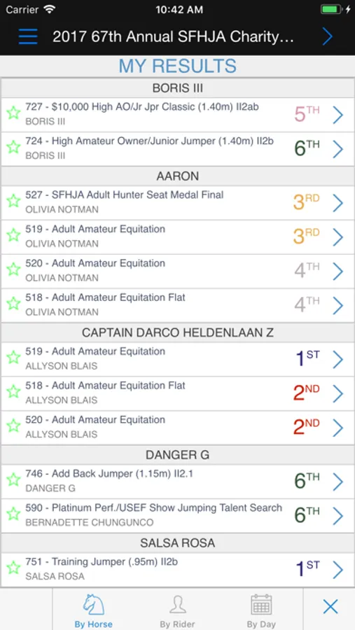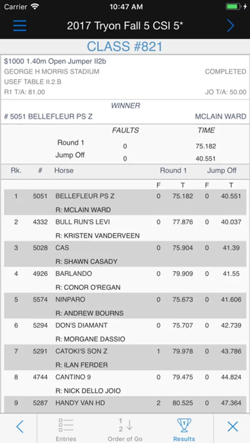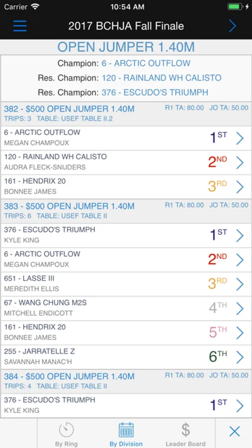 - Your Personal Info: Results, Schedule, Order of Go, Entries
