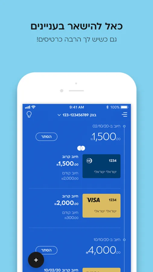 - האפליקציה שלנו לא רק יפה, היא גם נורא חכמה. כמה אפליקציות אתם מכירים שיש להן תובנות? תובנות על חיובים חריגים בהוראות קבע, על זיכויים שקיבלתם, על הקניות שלכם באינטרנט במט"ח על סכומי משיכות מזומן שלכם ועוד ועוד..