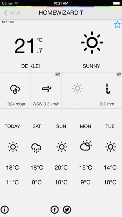 With HomeWizard's Weather app you can now view real-time data from weather stations all over the world. Select a pre-defined list of weather stations to get a quick overview of the measurements from those stations.