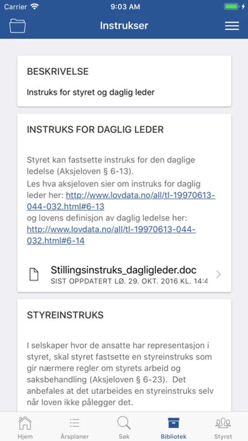 • Alltid tilgang til møte- og saksdokumenter. Det er enkelt å forberede og kalle inn til styremøte og generalforsamling.
