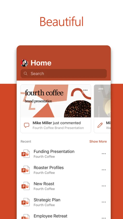 Need to access your PowerPoint files quickly while on the go? PowerPoint provides a quick view of your recent slides and presentations for easy access on any device.