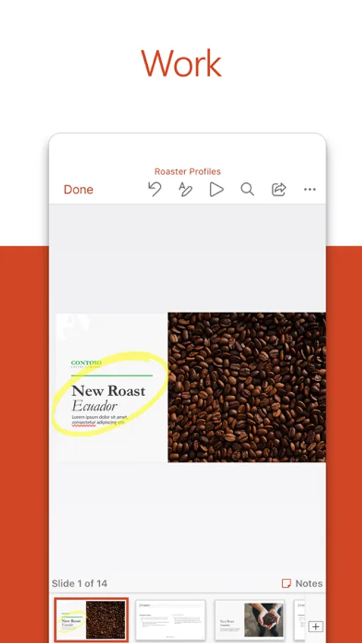 • Never miss a beat with PowerPoint on the go. You can make new presentations or continue working on existing ones.