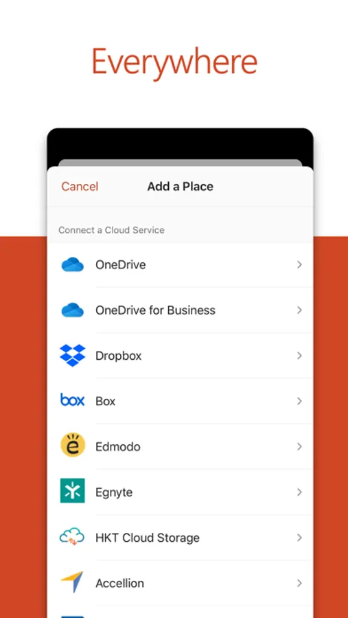 • PowerPoint syncs your presentations to OneDrive, so you can start a presentation on your PC, then edit using PowerPoint mobile.