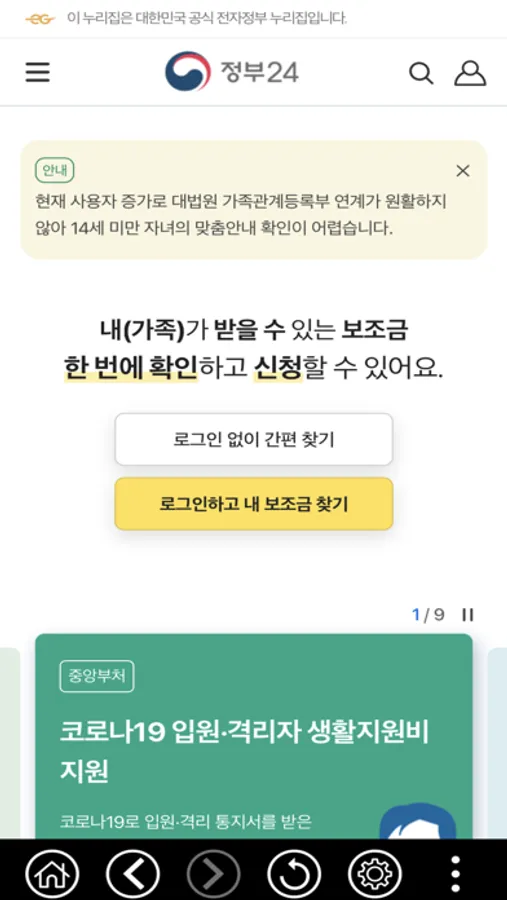 - 매일 업데이트되고 있으며, 총 9만여 건의 서비스를 분야별 및 맞춤형으로 제공하고 있습니다.