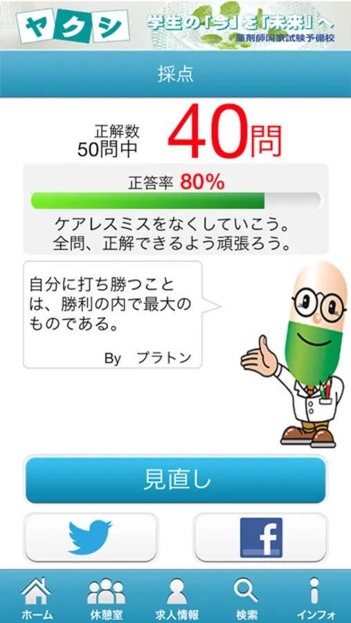 「見直し」ボタンを押せば、どの問題を間違えたのか一目瞭然です!