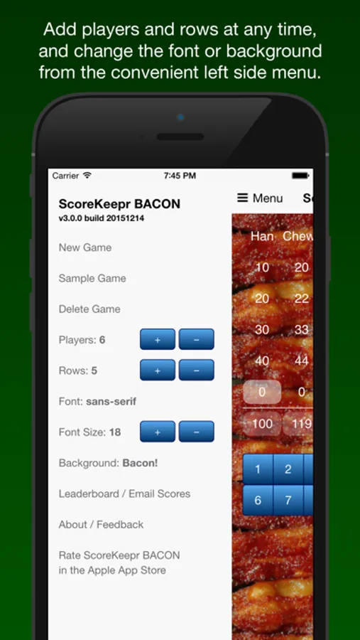 ScoreKeepr BACON version supports up to 99 players and 99 rounds of play!