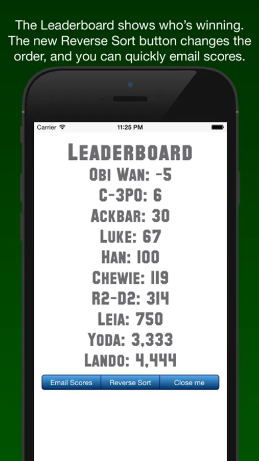 Email the results from the LeaderBoard, where players are shown sorted by total score. The scores can now be sorted by lowest first or highest first.