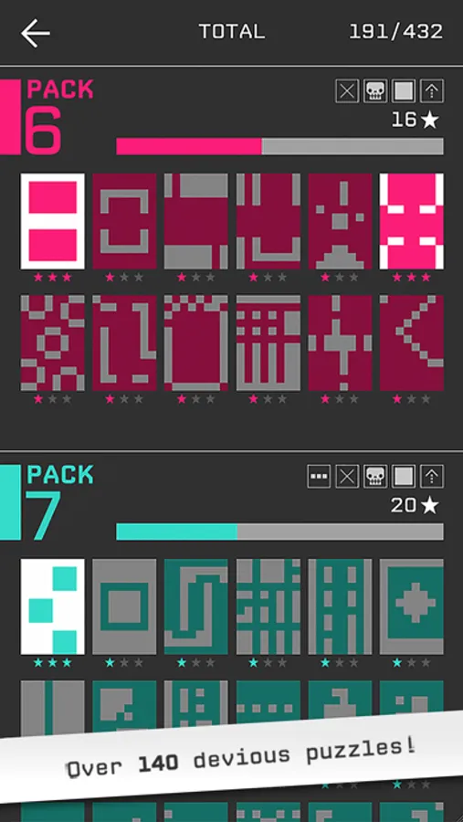 Solve your way through nine whole packs of levels, each featuring all new challenges and gameplay.