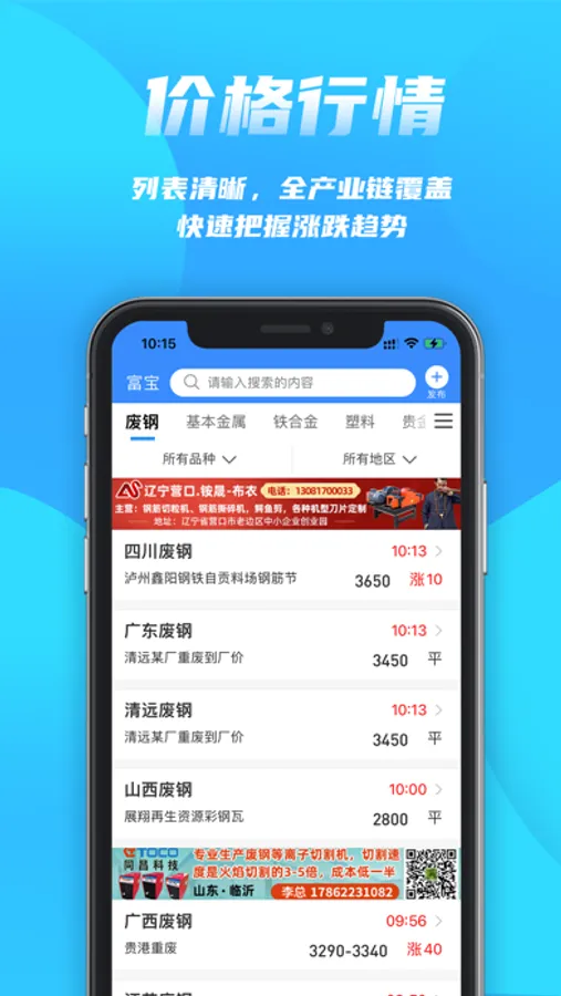 富宝资讯是国内领先的大宗商品综合资讯与现货交易服务商。富宝400多名员工长期专注于大宗商品的调查研究,致力于为全球客户提供最全面、最专业、最便捷的资讯、会展、广告、交易等一站式服务。富宝金属圈手机软件是一款集行情、资讯、为一体的手机平台,具备以下优点: