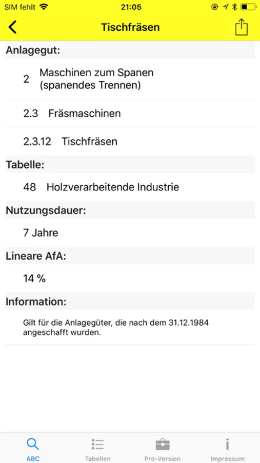 Dem Buchhaltungs-Profi bietet die Pro-Version zusätzlich Zugriff auf die Werte aller in den 102 besonderen AfA-Tabellen erfassten Wirtschaftsgüter.