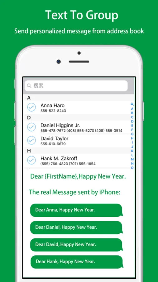 2. Support send personalized group SMS and normal SMS to the contacts in iPhone's address book.