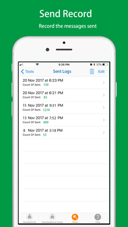 You can create an Excel file on the computer that contains the definition of personalized SMS content and receive numbers, and then uploaded to the iPhone via WiFi / iTunes, you can send personalized text messages to contacts in Excel. The Excel file must include the recipient number column which named "TEL", the other columns are optional. You can also export a sample file, edit the sample file and recipient information.