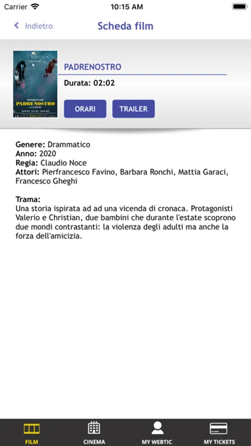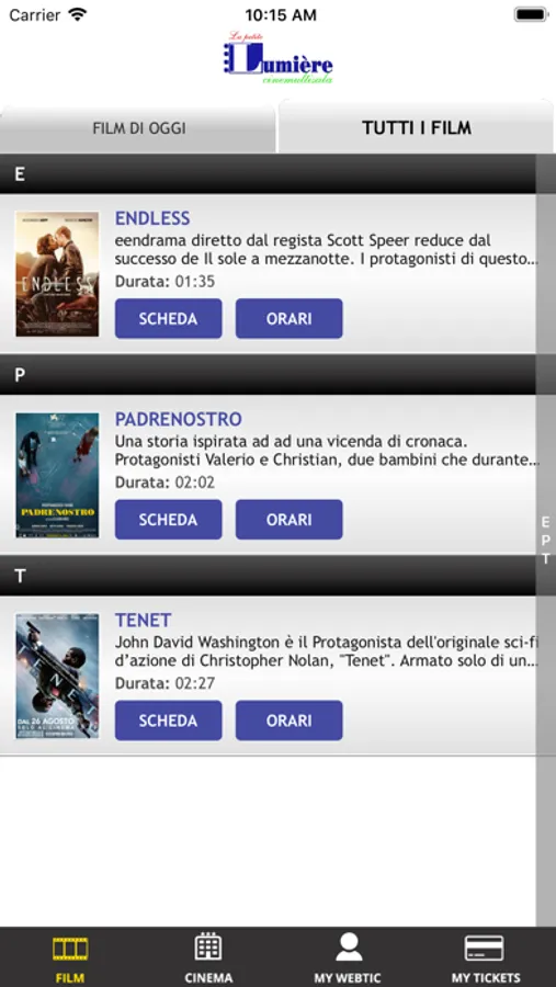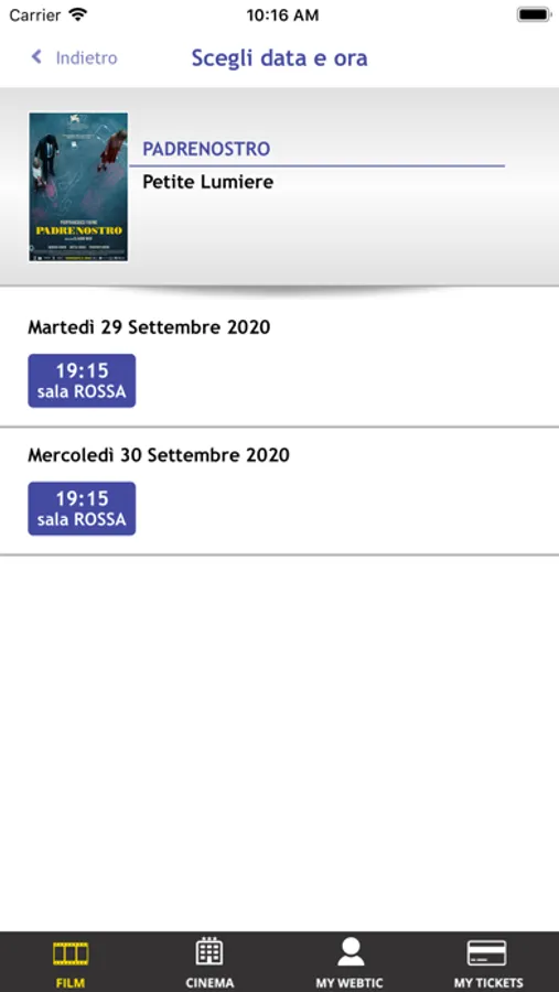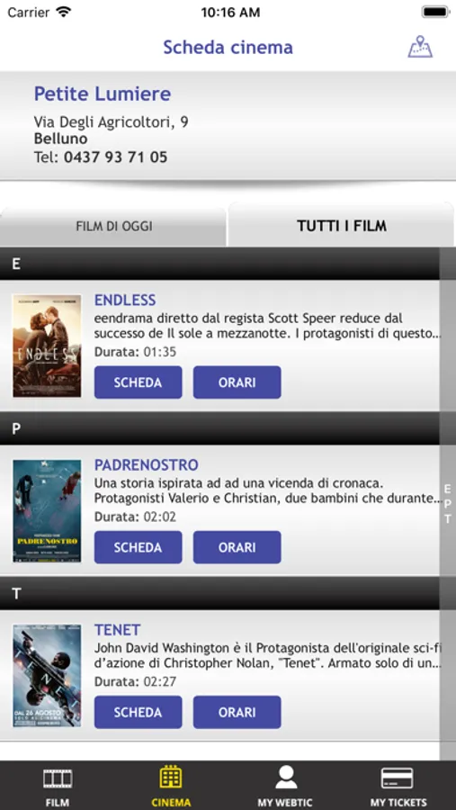 Applicazione di Crea Informatica, per l'acquisto e la prenotazione dei posti nel Cinema La Petite Lumière di Belluno.