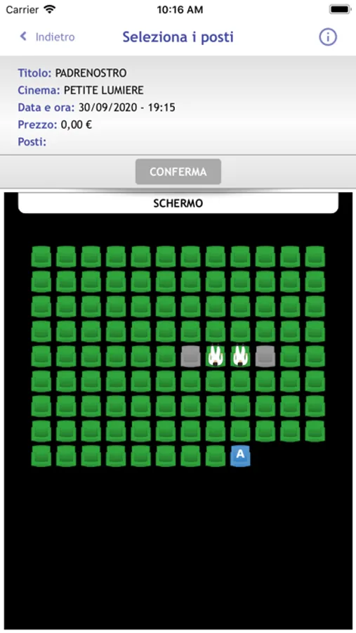 Potrai scegliere comodamente dalla mappa delle sale i tuoi posti e decidere se prenotarli ritirandoli al botteghino con almeno 30 minuti di anticipo.