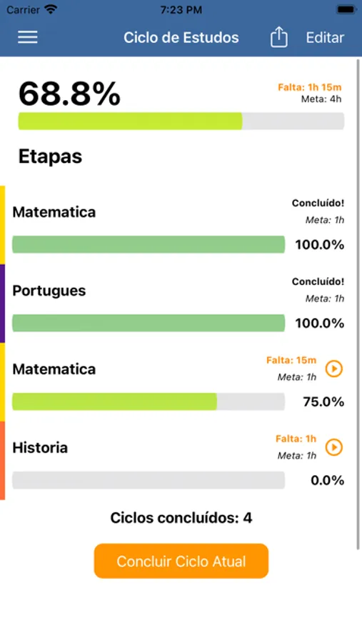 -Com essa compra dentro do aplicativo opcional, você tem acesso às melhores ferramentas de planejamento de estudos disponíveis: o Ciclo de Estudos e o Planejamento Mensal e Semanal. Agora você pode definir suas metas dentro do Aprovado!