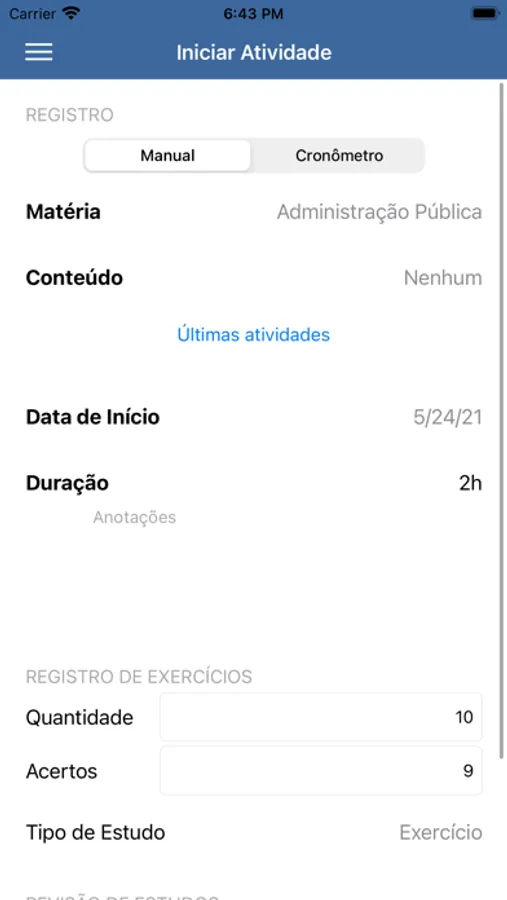 -Registre facilmente suas horas de estudos, de forma automática - utilizando o cronômetro - ou manual após finalizar seu estudo.