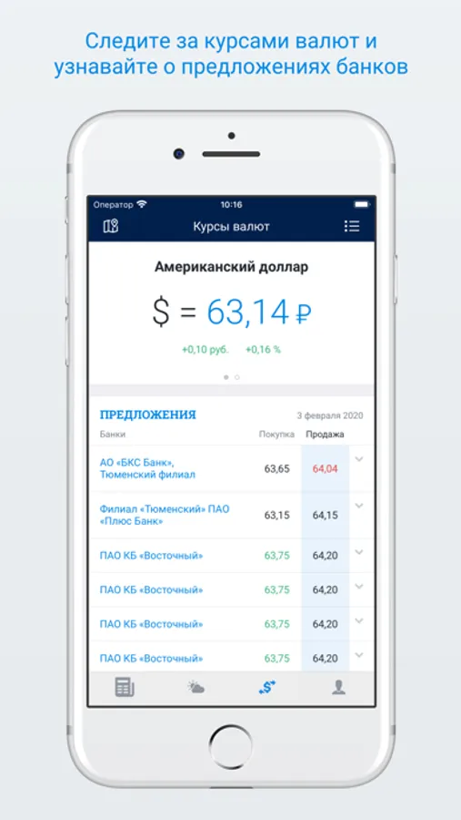 - смотреть курсы валют ЦБ РФ и тюменских банков;