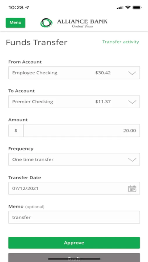 Our mobile banking application allows you to check balances, transfer funds, view transactions and check messages from anywhere, anytime. It’s fast, free and available to all of our online banking users. With this app Alliance Bank Central Texas customers can do the following: