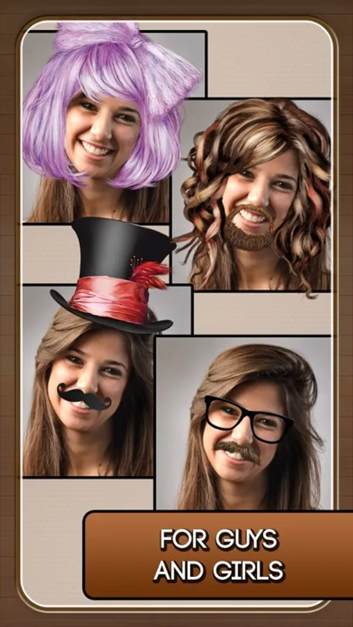 -Also included are different hair styles, beards, glasses, and hats that you can use to add some more fun to your photos