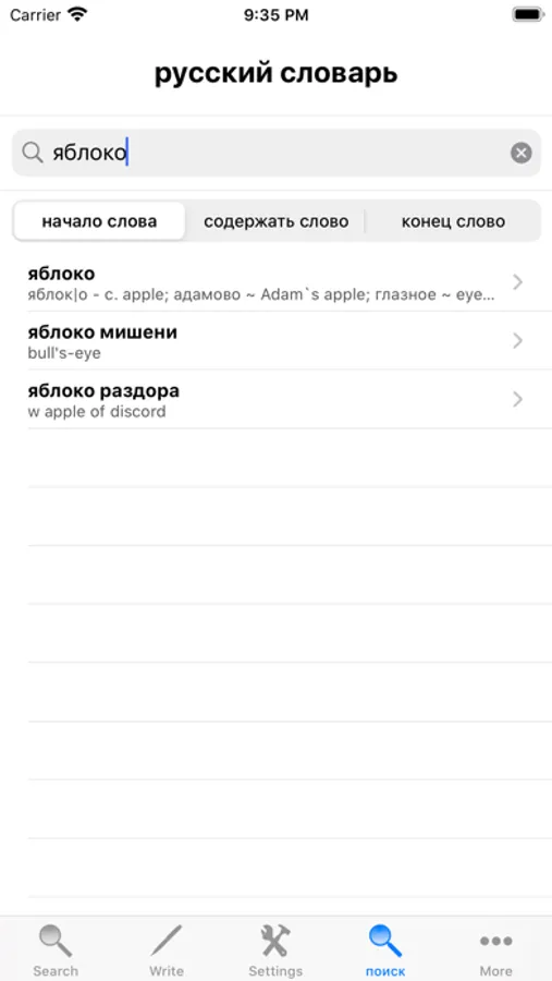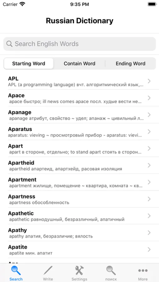 - Search the English word and it will display its Russian translation.
