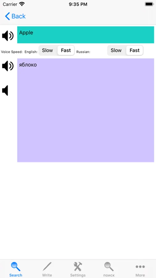 - Search the Russian word and it will display its English translation.
