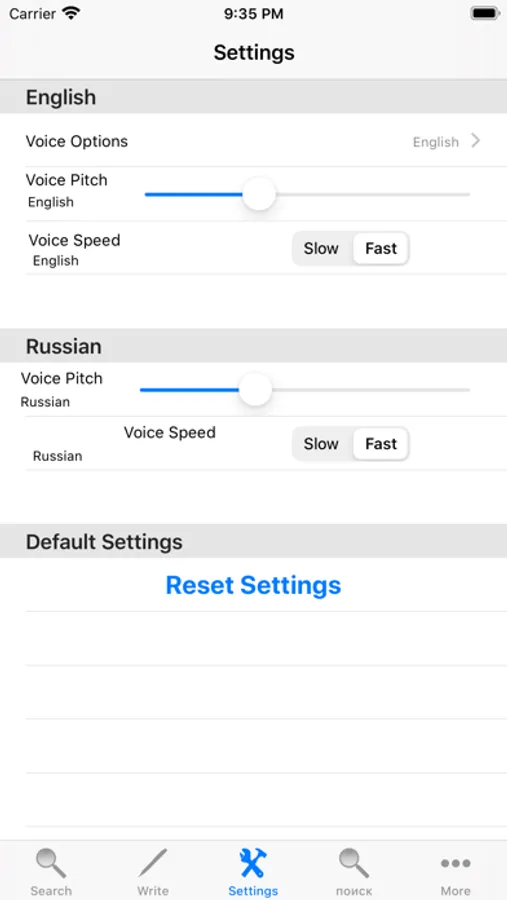 - Change the voice pitch for both English and Russian.