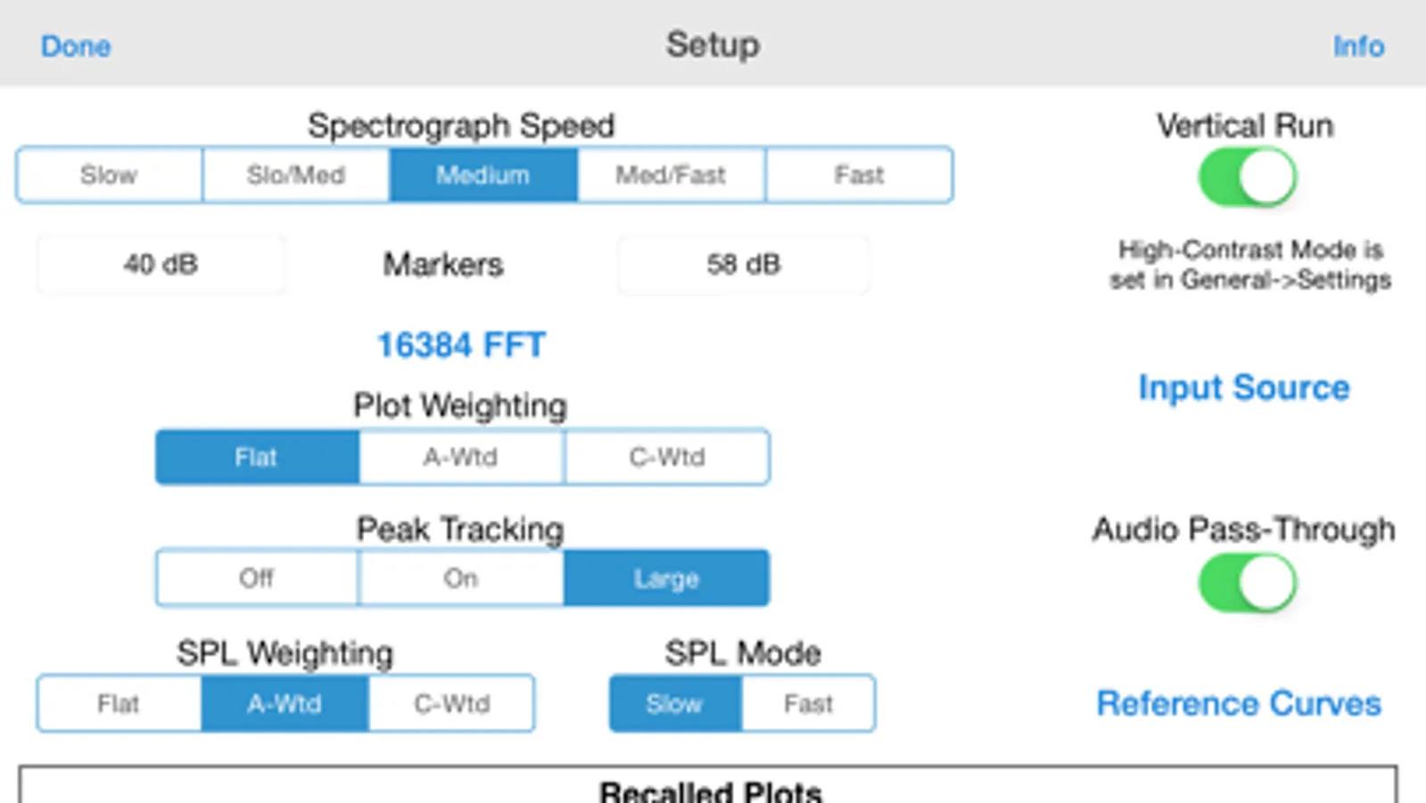 All of the standard AudioTools features, such as Save / Recall and the Generator Panel are available. All settings are automatically saved and restored the next time that you run the app.