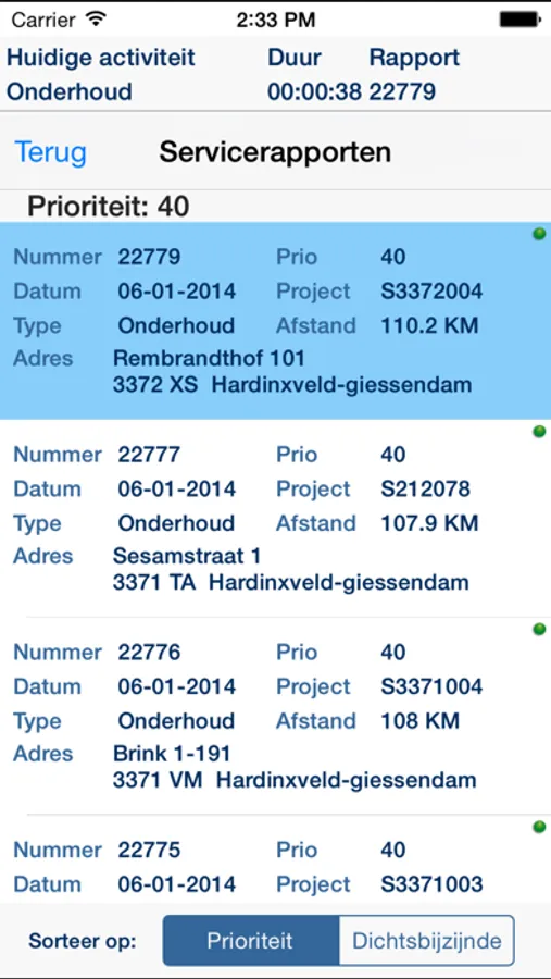 De planning voor uw monteurs wordt op basis van prioriteit en locatie zo efficiënt mogelijk aangeboden. Middels GPS coördinaten worden de te bezoeken adressen en routes weergegeven op de kaart. Op basis van prioriteit en afstand kunnen uw monteurs alsnog de meeste efficiënte volgorde van aanpak kiezen.