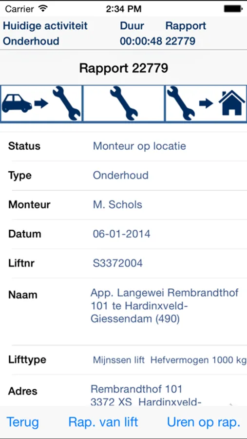 De app biedt de mogelijkheid om de reisuren en de gewerkte uren online met een minimum aan handelingen op de juiste projecten te registreren. Tevens wordt direct de status van de voortgang van een serviceopdracht teruggemeld.