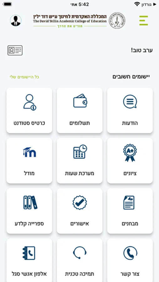 אפליקציה לסטודנטים ולמרצים של מכללת דוד ילין, כאן תוכלו להתעדכן במערכת שעות, ציונים, לוח בחינות, טרמפים, הודעות, ביצוע תשלומים ועוד הרבה.