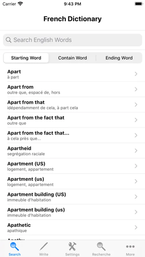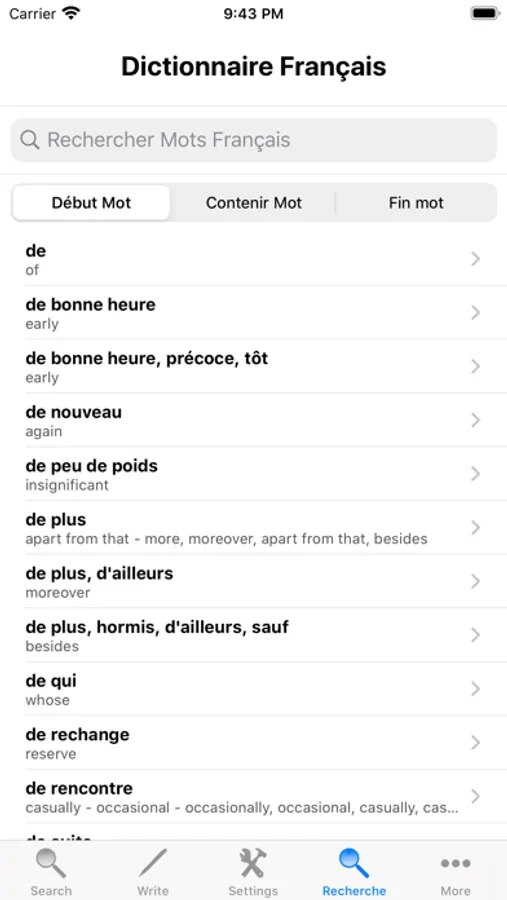 - Listen the French and English sounds of searching words and its meanings offline and online.
