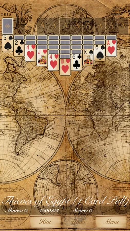 Thieves of Egypt is variant of the popular Klondike Solitaire. In Thieves of Egypt Solitaire, the player attempts to sort a 104 card deck by suit and in order into four piles of cards known as foundations. Cards can be moved between the columns, or to the foundations. The cards in the columns must be built down (from King to Ace) alternating color. When the player gets stuck he can click on the deck in the top left of the game screen. This will deal 3 cards at a time onto the waste pile. This implementation also includes one popular varation that will deal only 1 card at time - this will make the game a little bit easier.