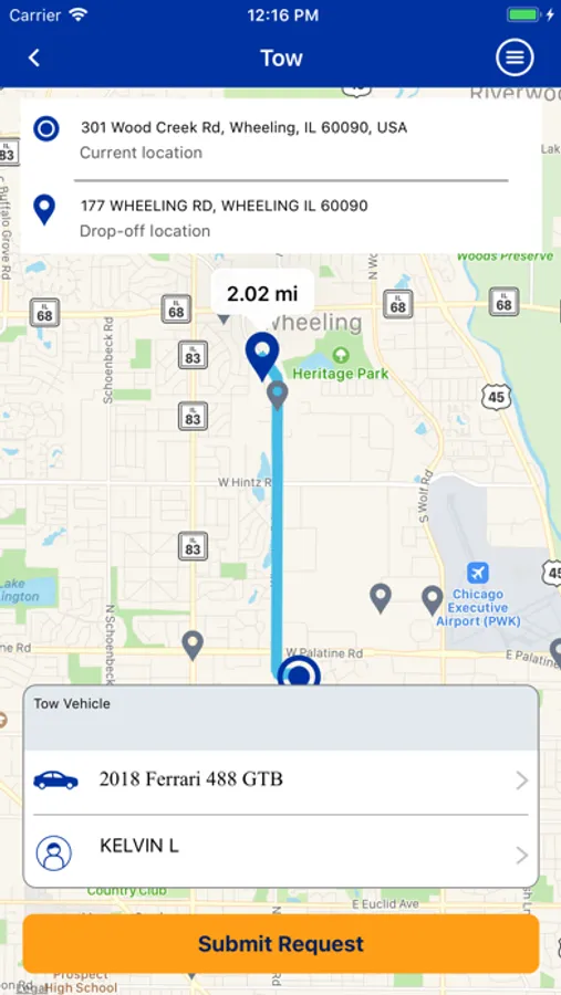 • Retrieve confirmation service is on the way and the estimated time of arrival