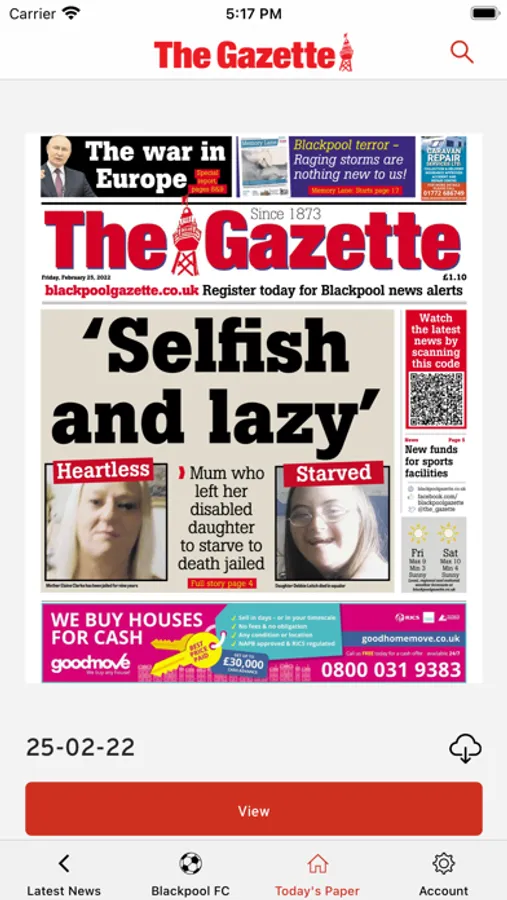 Download the Blackpool Gazette newspaper app now and discover up-to-the-minute latest news from your local area with blackpoolgazette.co.uk, updated throughout the day and including photos, videos, improved digital content which can all be shared on social media. We have live news notifications sent direct to your device.