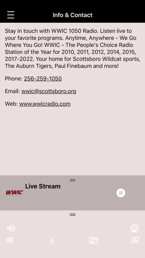 Stay in touch with WWIC 1050 Radio. Listen live to your favorite programs. Anytime, Anywhere - we go where you go. WWIC is your home for the Auburn Tigers, Paul Finebaum, the Tennessee Titans, Scottsboro Wildcats, Classic Country Music and more. Listen to us live on your device!