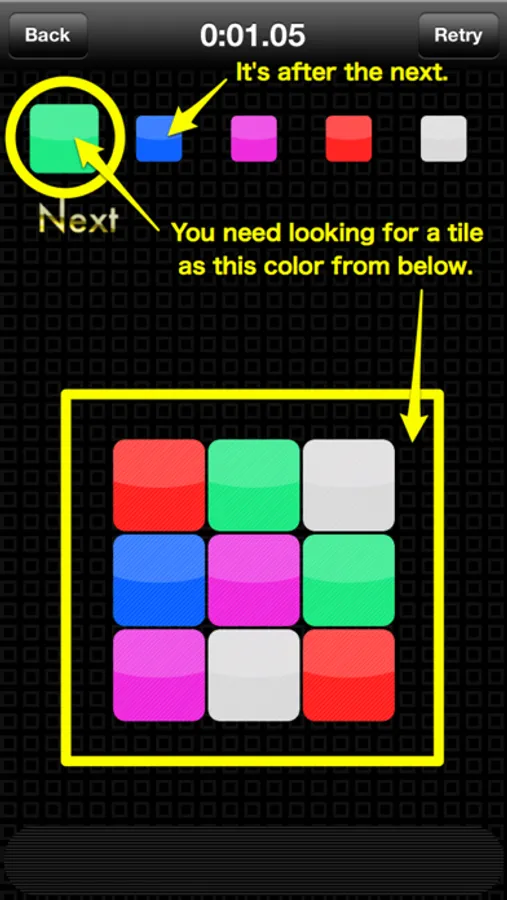You have to tap center of panels as same as the left of top of 5 colors. If you correct to tap, then the panel will be vanished and the top of 5 colors will be changed to move 1 left.