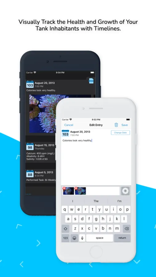 • Visually keep track of tank inhabitants with Timelines,