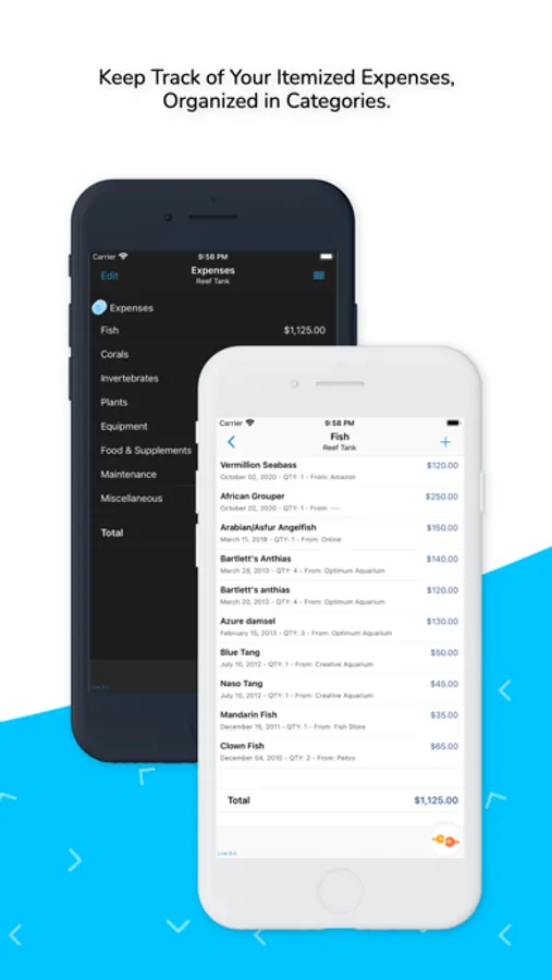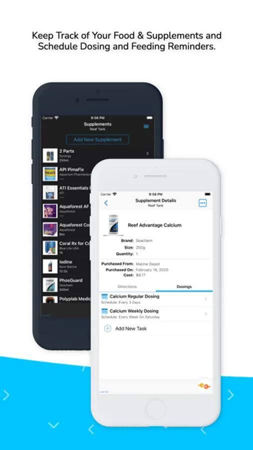 • Import and save your livestock information from Aquaribase for each tank,
