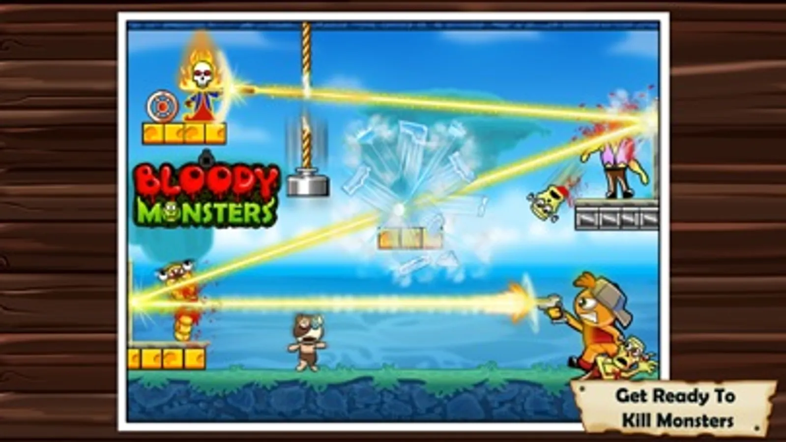 Shoot the bloody monsters & survive the carnage, in this extremely fun arcade shooter game with a bouncy twist. Bloody Monsters provides hours of entertainment as you master the art of a shooter in this fun shooting game. The monsters are everywhere, and your job is to "Shoot The Bloody Monsters"! You have limited bullets, but they bounce all over the place.
