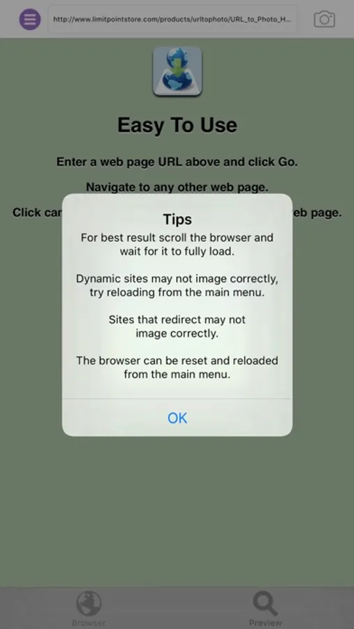 Note: This app works best on web pages that fully load. Web pages that are dynamic or continue to update while being viewed may not yield the expected image.