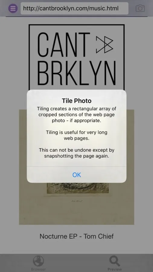 Web pages that are very long will have snapshot images that are very long also. In this case you can tile the photo from the main menu 'Photo Actions' submenu.